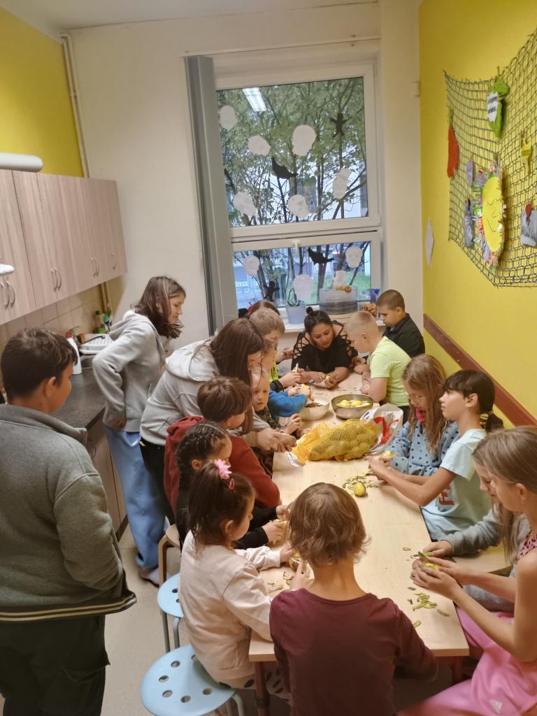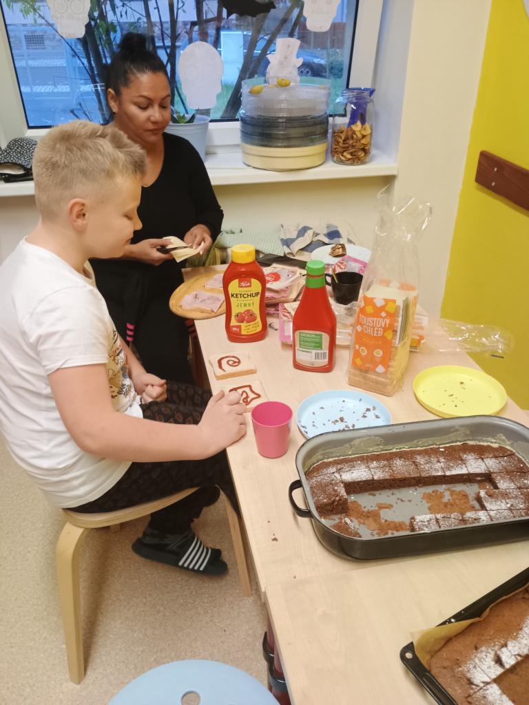 Od pátku do soboty proběhlo oblíbené přespávání s dětmi. Společně jsme si připravili večeři – řízky s brambory, které všem chutnaly. Nechyběla ani napínavá noční hra, spousta smíchu a pohádka před spaním.