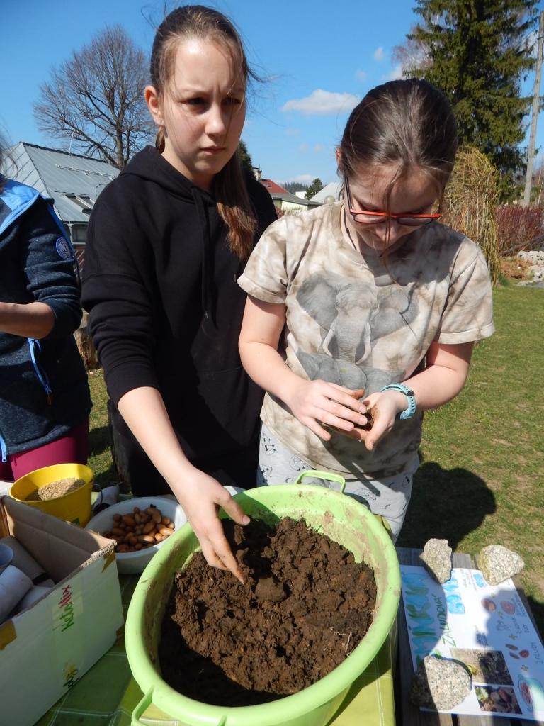 Nejprve jsme si vyzkoušeli několik venkovních aktivit, her a soutěží. Následovala přednáška paní Hrůšové, místní pěstitelky z Bílého Potoka, o semínkách, semenaření a semínkovnách. Ta byla ukončena otevřením Střevličí semínkovny. Přednáška byla příjemná, užitečná a kupodivu zaujala i velké procento dětí, se kterými jsme do Hejnic přijeli.