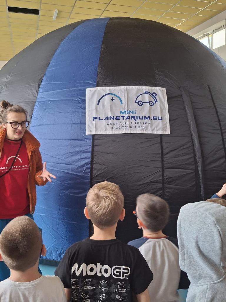 V pátek 17. října se děti ze školní družiny pod Ralskem vydaly na fascinující cestu do tajemných hlubin vesmíru. Přímo do školy za nimi totiž dorazilo mobilní planetárium, které jim otevřelo dveře k objevování vesmíru, hvězd i vzniku našeho světa.