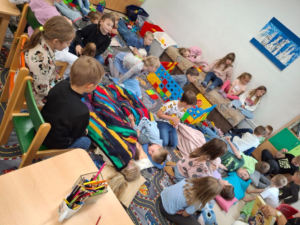Pravidelně odpočívají u pohádky, ti starší se zase nemohou odtrhnout od Lega. Připomněli jsme si mezinárodní den včel a vyprávěli si o jarní přírodě. Když počasí dovolí, jdeme ven, kde vedou míčové hry.