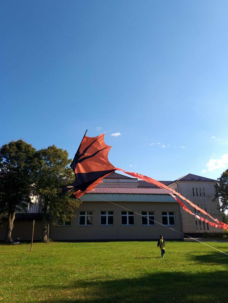 K podzimu již tradičně patří draci, tak jsme si v družině (Komenského) uspořádali drakiádu. Děti si vyrobily vlastního draka ze čtvrtky a z igelitového pytle. Na hřišti si pak vyzkoušely jak létají draci vlastní výroby nebo kupovaní. Dnes nám počasí přálo-foukal čerstvý větřík a drakům se pěkně létalo.